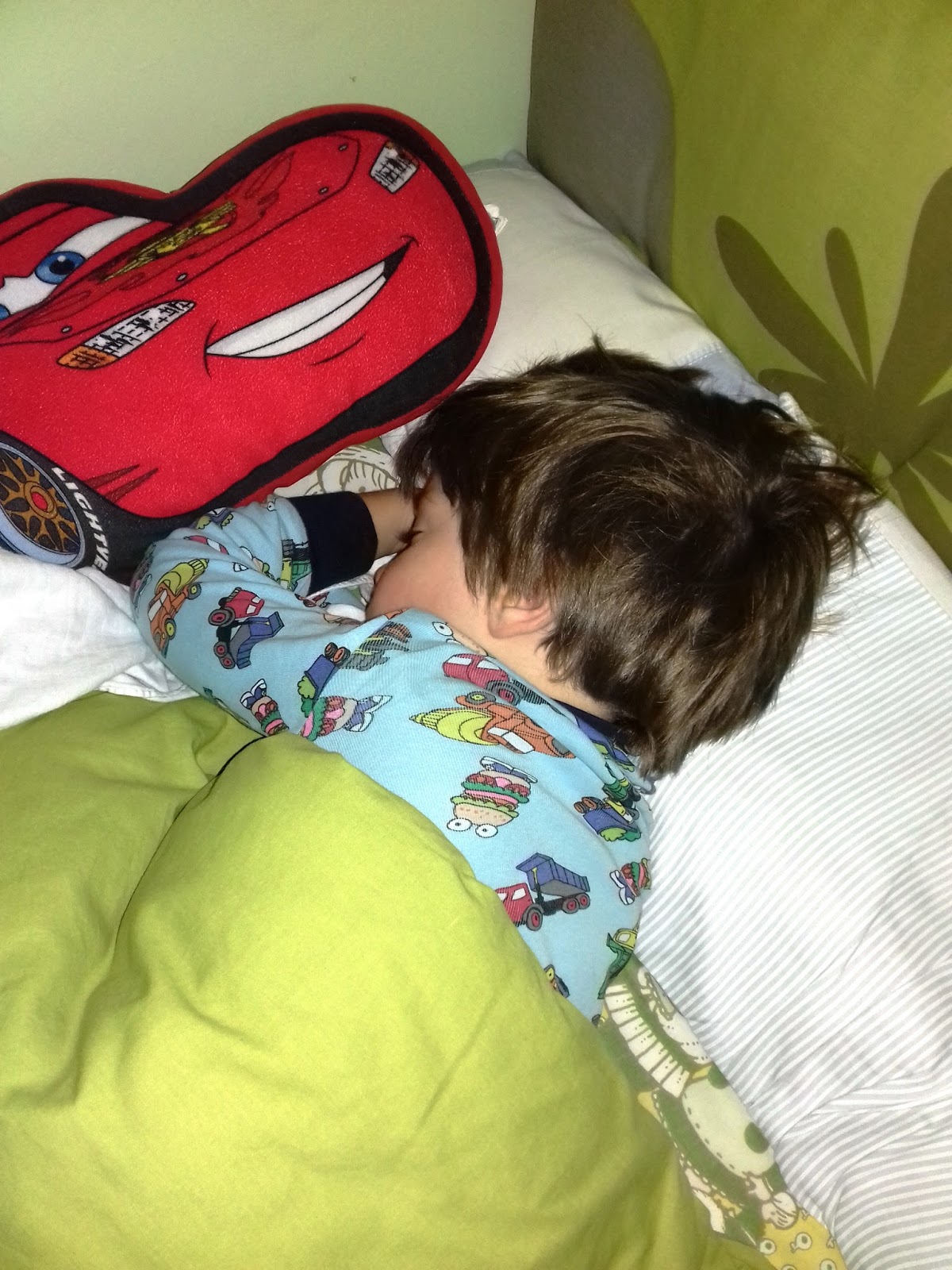 Cabe-me a árdua tarefa de todos os dias acordar o Diogo. Custa sempre tanto, quase que mais a mim que a ele, especialmente naqueles dias em que está mau tempo e frio. Se há vezes em que ele até já está acordado, outras, como hoje, é muito difícil conseguir que ele desperte. Vira para um lado, vira para o outro, tapa-se mais ainda, aconchega-se melhor, põe a fraldinha na cara, enfim... vai tentando de tudo, e eu aos poucos lá vou começando a despertá-lo com uns beijinhos e umas palavrinhas doces. Um truque que aprendi (também para me ir despachando) é, enquanto ele vai acordando e se espreguiçando, aproveito para o ir vestindo. Poupa-se tempo e ele vai acordando. Hoje de manhã foi assim até despertar: