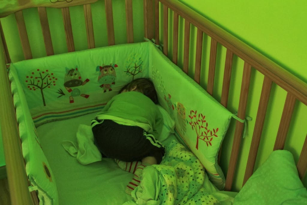 Assim se dorme bem aqui em casa - de rabinho para o ar e com a cara enfiada na almofada e bem no canto do berço.